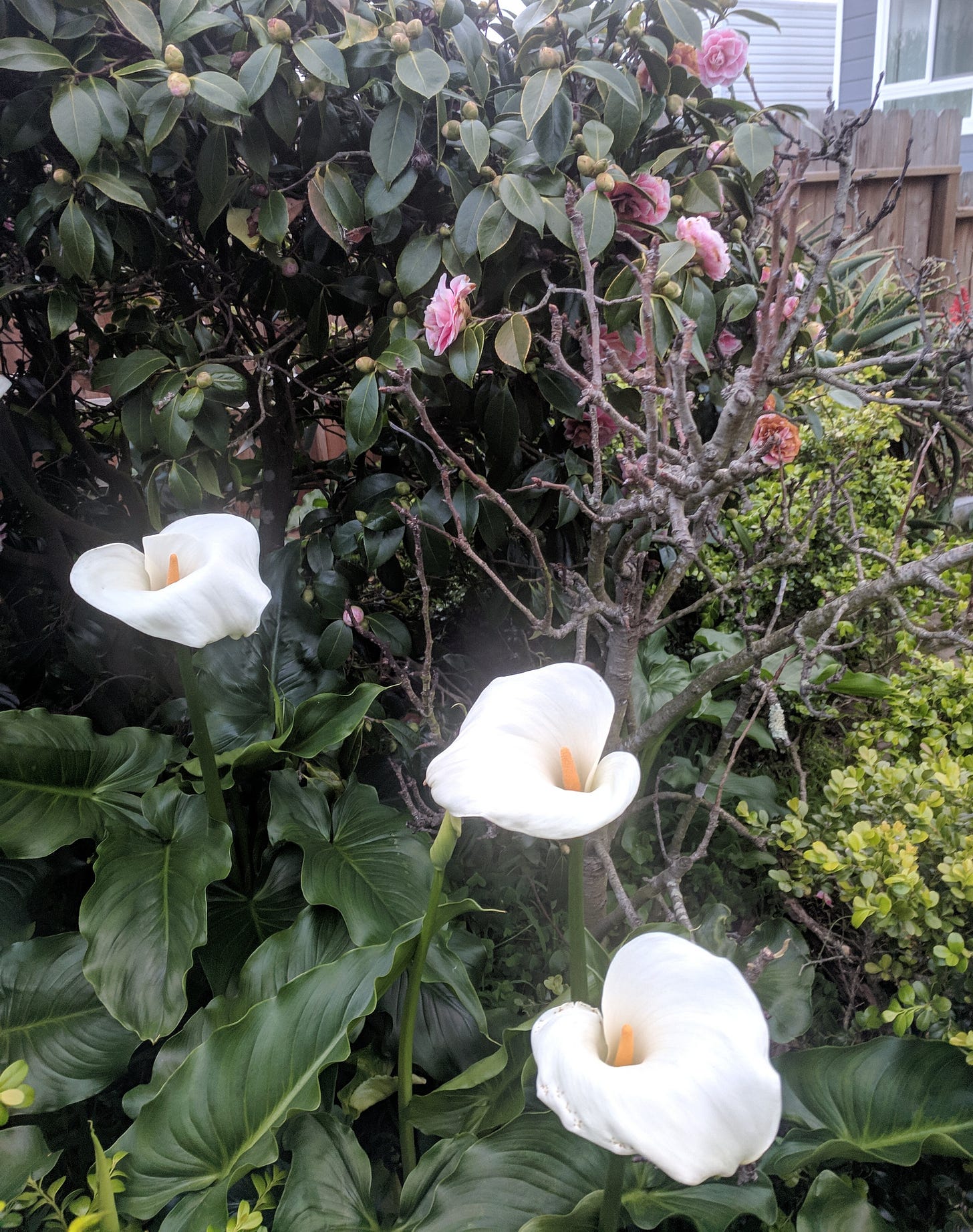 The quince in the backyard suddenly has leaves. The pear trees have buds, the camellia their first pink puffs. The calla lilies are dotting the otherwise green yard with their soft white unfurling. My nemesis oxalis spreads its buttery yellow blossoms in its quest to take over the world. All according to their internal programming. Not talking themselves out of it. Sticking to the plan they made when they were still a seed, a rhizome, knowing this plan would allow them to have the conditions they need to blossom.